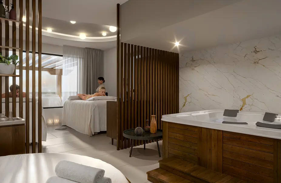 Der 4.000m² Wellnessbereich bietet beheizte Innen- und Außenpools, Saunen, Beauty Farm, ganzheitliche Behandlungen sowie ein Adults-Only Rooftop-Spa mit Infinity Sky Pool und atemberaubendem Blick auf die Adria. Separate Familienbereiche ermöglichen entspannte Momente für alle Altersgruppen.